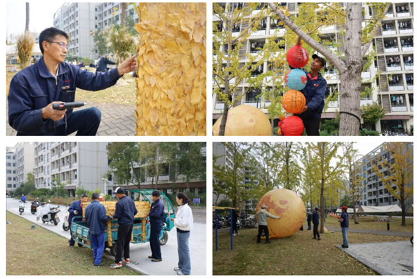 为打造独具特色的秋日校园景观,在仓前校区,后勤服务中心提前半个月开始筹备,组建了20人的专项小组,重点攻克落叶艺术造型的制作难题。经过多次试验,创新使用热熔胶枪作为主要粘贴工具,成功实现了落叶与钢琴、拱门、月亮等造型框架的牢固贴合,确保了艺术装置的精细度与美观性。
