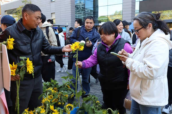 活动现场,绿意盎然的“平价花市”集中展示了罗汉松、茉莉花、多肉玉露、盆景等近50种绿植盆栽,方便师生将“秋天和绿意打包回家”。来自花海劳动教育基地的600余支向日葵现场免费赠送,传递了阳光与温暖。在节能宣传区,后勤党员志愿服务队与学生“节能小卫士”,通过分发资料、知识问答、绿色签名墙以及趣味“节能刮刮乐”等互动形式,寓教于乐,有效普及了节能知识,也增强了师生的节能环保意识。