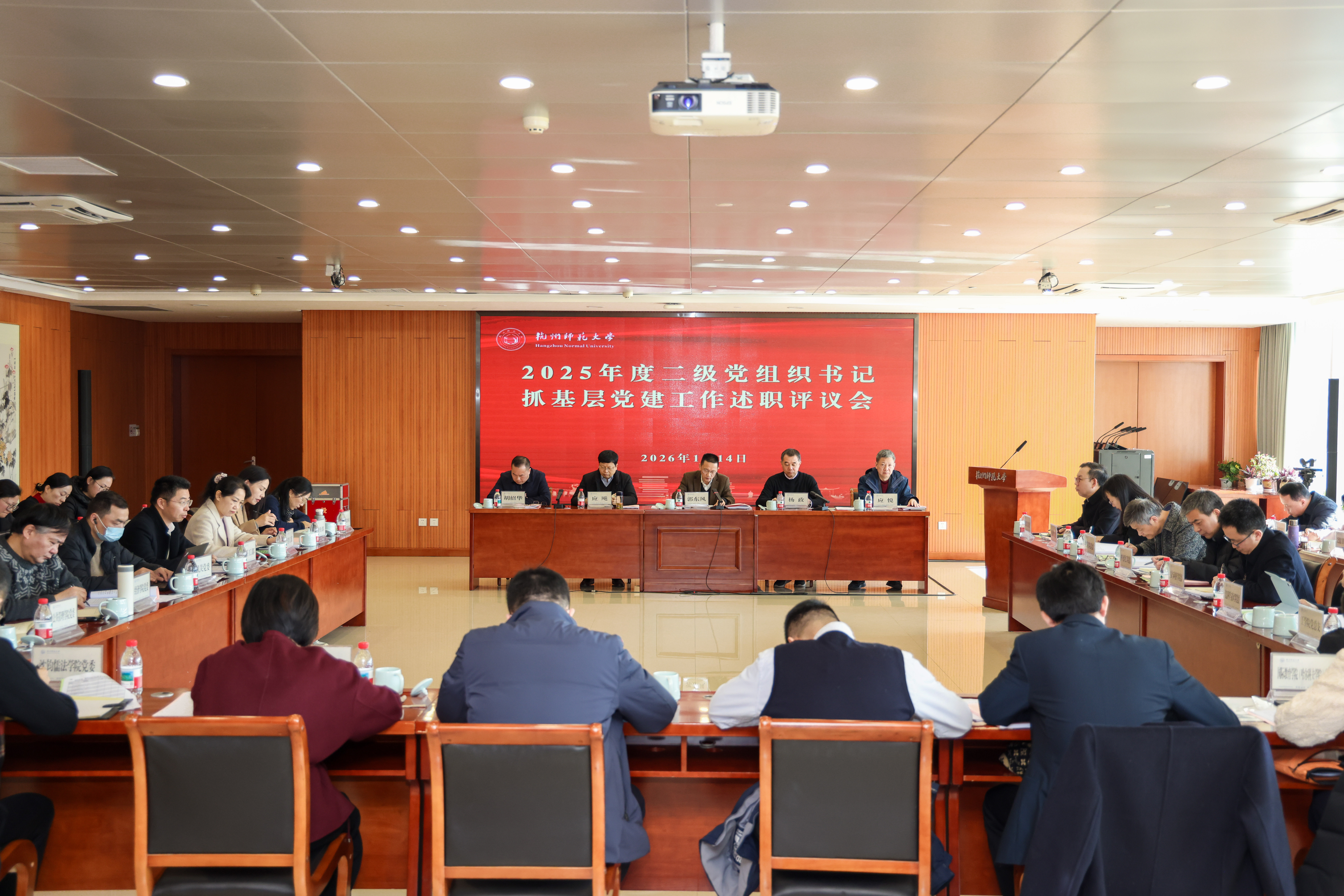 1月14日上午,学校党委召开2025年度二级党组织书记抓基层党建工作述职评议会。校党委书记郭东风出席会议并讲话,强调要深学细悟习近平总书记关于党的建设的重要思想、关于党的自我革命的重要思想,深入学习贯彻党的二十届四中全会精神和习近平总书记考察浙江重要讲话精神,深刻认识党建工作的新使命新要求,深刻认识党建工作存在的问题和短板,树牢“浙江无小事、杭州无小事、师大无小事、事事连政治”思想,以刀刃向内的勇气和自我革命的精神,以高质量党建凝聚新合力,更好统筹学校高质量发展和高水平安全。